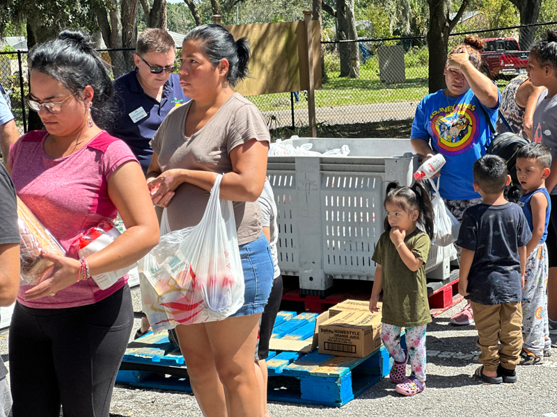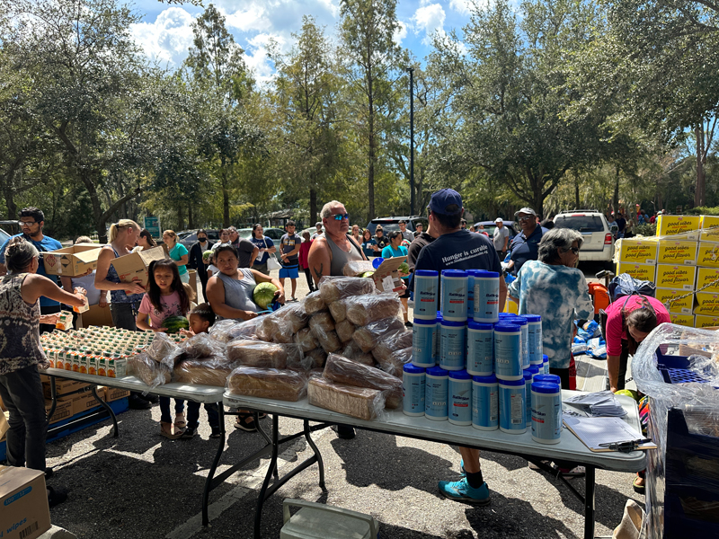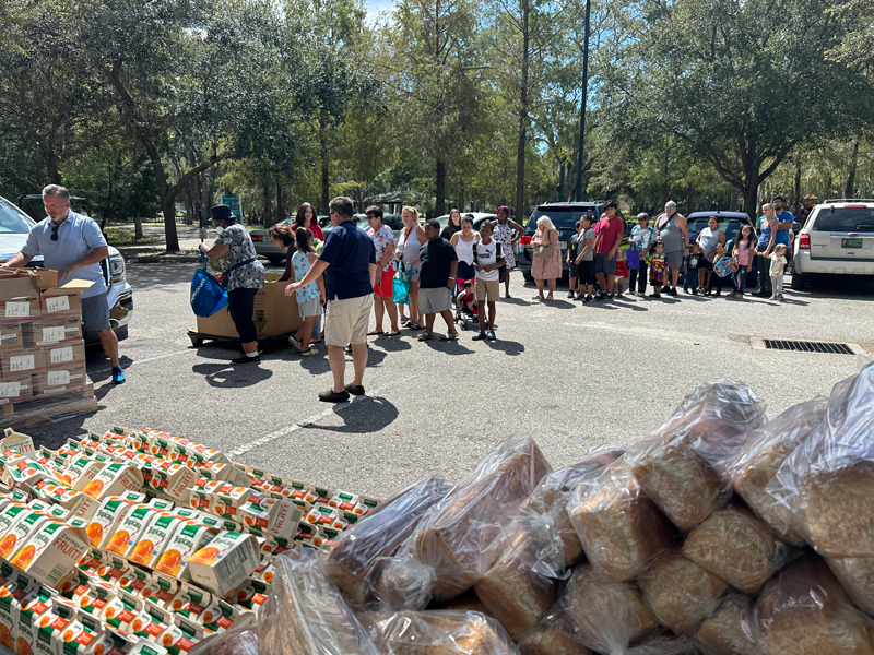Once the storm passed, and we were able to resume operations, we immediately began planning food distributions for the hard-hit areas in Manatee. The storm left devastation of flooding and power outages in Myakka, along with several other areas who were initially without power. We began bringing supplies to Myakka just two days after the storm ended, and for the next two weeks continued with distributions of food and critical supplies in Myakka, along with Duette, Pride Park, and Lincoln Park.