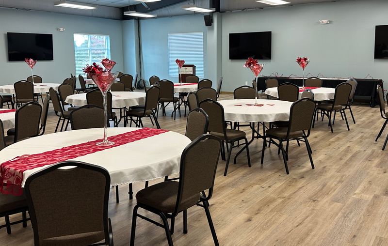 Welcome to the Selby Foundation Nutrition Services Center. Our beautiful, open space venue is the perfect spot to host your special celebrations, company events, or business meetings. This multi-purpose space can accommodate up to 80 guests in a comfortable, attractive setting.