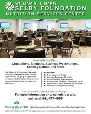 The most attractive feature of our rental space is when you book your event with us, you are supporting the programs of Meals on Wheel PLUS of Manatee.